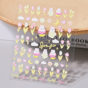 INS風浮き彫り5D少女ネイルアート装飾貼り甘いかわいい国風星薔薇立体爪貼り集合