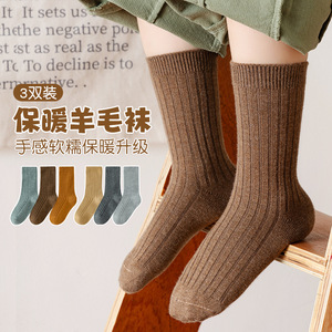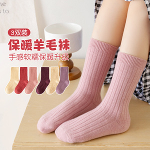 子供のウールの靴下2023秋冬のウールの靴下の男女の宝の中で筒の靴下の女の子の純色のメリヤスの弾力の双針の靴下