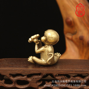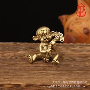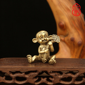 新型の中実猿は如意を抱いて真鍮の家庭の客間の事務室のデスクトップのお茶を抱いて贈り物の工芸品を飾ります。