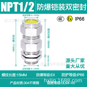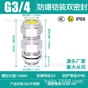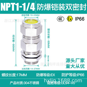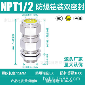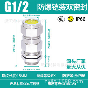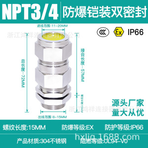 装甲防爆ダブルシールケーブルコネクタ防水グランドヘッド船用充填材通信銅ニッケルメッキ304ステンレスnpt