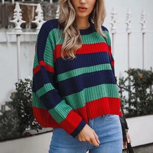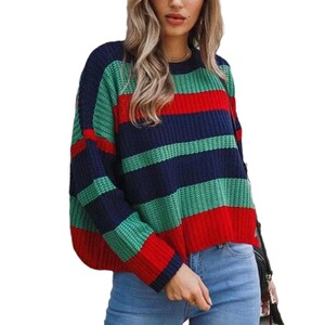 国境を越えた2025年の新しい婦人服、新鮮でシンプル、ゆったりとしたマルチカラーのストライプとニットセーター、快適でカジュアル