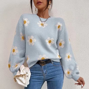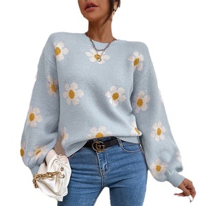 アマゾンのクロスボーダーの外国貿易の花のニットの女性の上着の長袖の秋冬の欧米の新型の丸首のセーターの女性