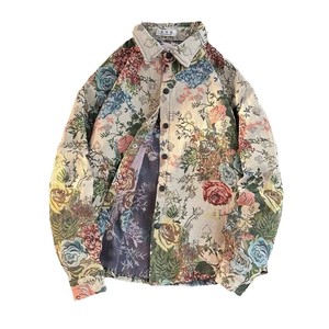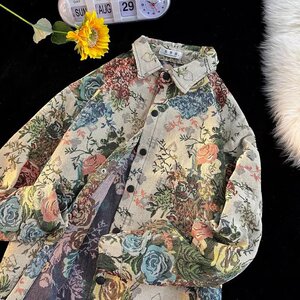 新しいメンズジャケット春と秋のトレンディなジャカードデザインシャツトップルーズアメリカンレトロワークジャケット