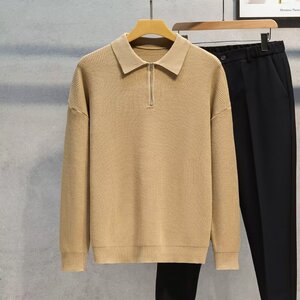 半ファスナーセーター男性秋冬2024起爆襟ニットゆるい古着ヴィンテージカジュアル上着