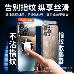 iPhone16PRO携帯電話ケースに適していますすりガラスAG大型窓漏れマーク磁気吸引Apple 15落下防止ハードケース