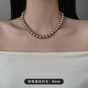 フランスのレトロ高級感のある真珠のネックレスはファッション的です。