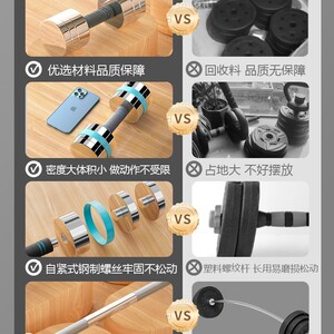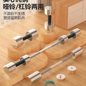 純鋼ダンベル中実フィットネス男性家庭用メッキ調節可能な重量バーベル二合一15kg女性取り外し可能