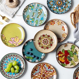 創意的な手描きの釉薬の下で色彩の陶磁器の皿の家庭用の野菜の皿の冷たい野菜の皿の果物のお菓子の皿の6寸は骨の皿のかすの皿を吐きます。