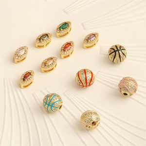 18k金メッキの保色の小さいジルコンのバスケットボールの馬の目の穴があいて玉のペンダントのdiyのアクセサリのブレスレットの部品の卸売りを飾ります。