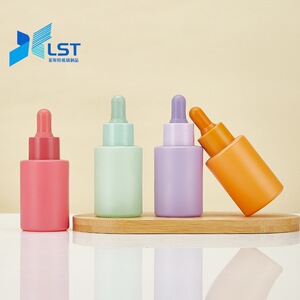 卸売り30ml平肩ガラス精油瓶滴管瓶精華瓶マカロン色化粧品精油分注瓶