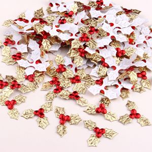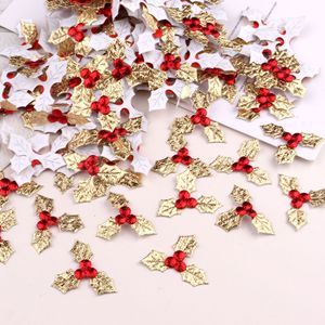 クリスマス装飾三枚葉金銀生地ギフトボックス部品diy手作りクリスマス樹葉紅果100枚