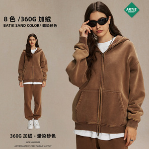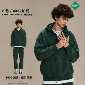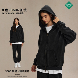 ARTIE紳士服蝋染レトロ旧潮牌男衛衣oversizeゆるい水洗い加毛男帽子シャツ