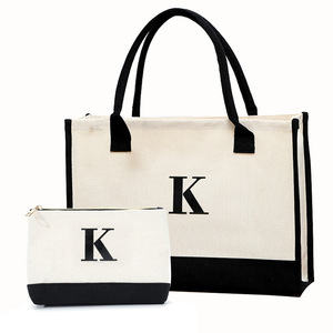アマゾンのクロスボーダーのアルファベットのバッグのセットの綿の個性のアルファベットのキャンバスの袋はトートの女性のカバンをつなぎ合わせてショッピングバッグを持ちます。
