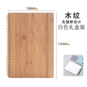 A5木目色(布柄pu革) 白ギフトボックス付き