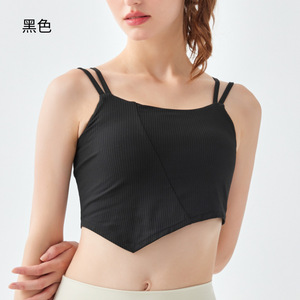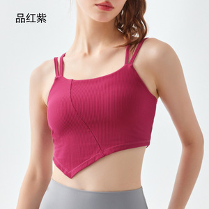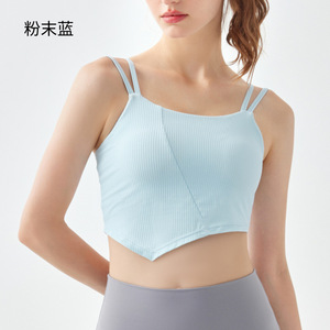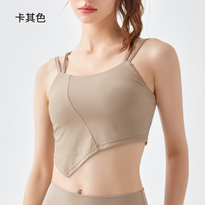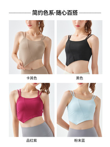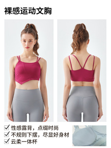 ワンピース式スポーツ下着裸感ヨガフィットネス式ブラジャー胸パッド美背女性一体式固定カップ