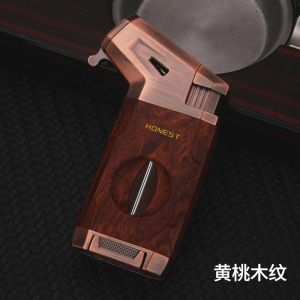 飞鹰充气防风木纹色雪茄打火机大火力直冲火焰V型雪茄刀工具跨境