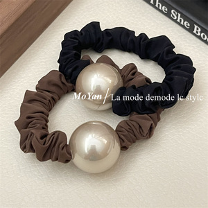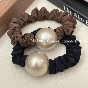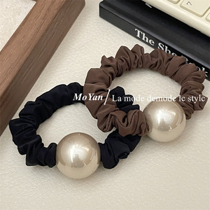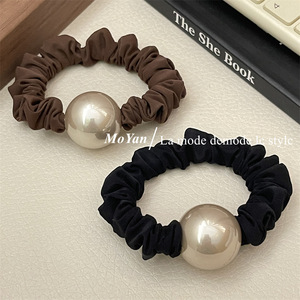 気質の金のシャンパン色の大きい真珠の髪ひもの小腸の髪輪の太い皮の筋の女性の馬尾の髪ひもの低い団子の髪飾り