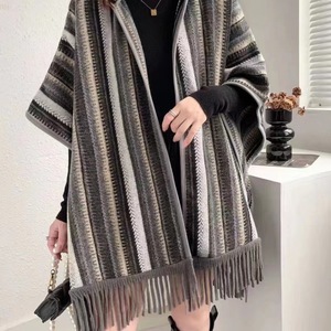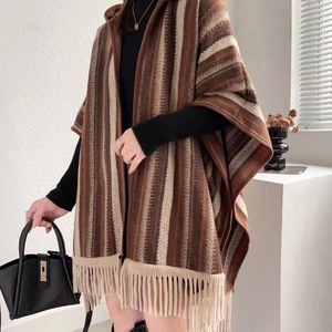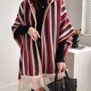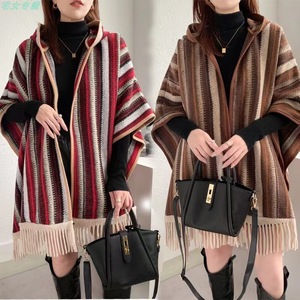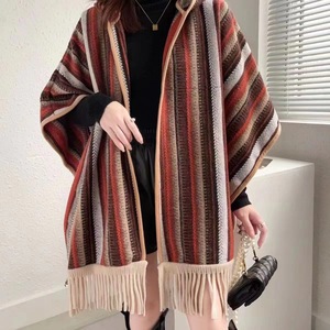 新しい秋冬の民族風のストライプのフリンジの帽子のストールのファッションの保温のマフラーの旅行のマントのマントのコートの女性