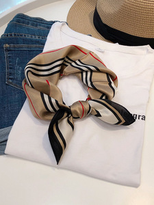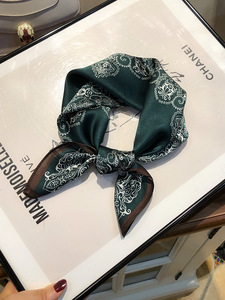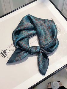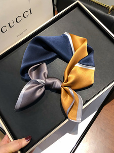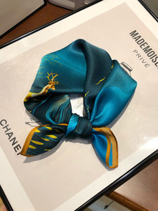 百合青いシルクタオル100% 桑シルクスカーフ春秋保温装飾韓国の小さなスカーフ頚椎