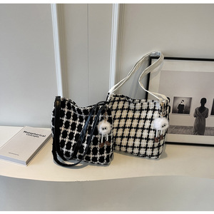 百合流行バッグ大容量2023夏新作シンプル格子ショルダーバッグ高級感洋風トートバッグ