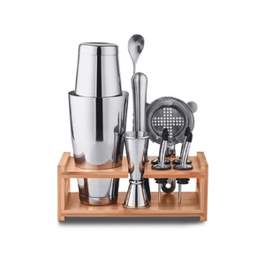 国境を越えた現物の爆金酒具セット木架台座付きステンレスカクテルのカクテルバー工具の組み合わせ