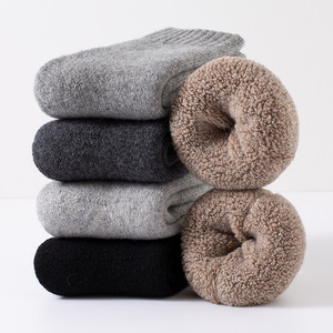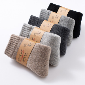 冬の超厚男性ウール靴下女性保温防寒厚手毛輪中筒靴下純色ベルベット靴下