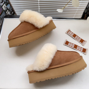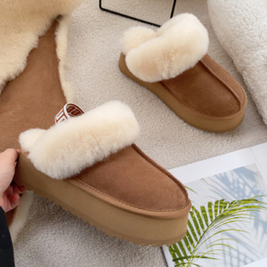 冬の女性の毛皮一体の厚い底のスリッパの雪地の靴の包頭の滑り止めの半引きの綿の靴の中で高くなって家の外で着ます。