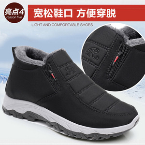 2024 冬の古い北京綿の靴女性のベルベットの厚く暖かいスノーブーツ中高年男性と女性の同じスタイルのカップルの綿の靴
