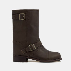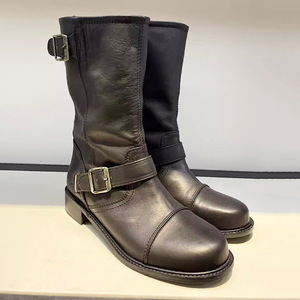 HOWUSブーツレディースマーティンブーツ2023秋新作本革フラット韩国insローヒールショートブーツショートブーツ