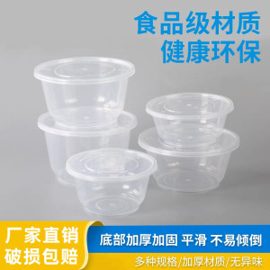 使い捨ての碗の円形の透明な弁当箱の食器は蓋がついています。