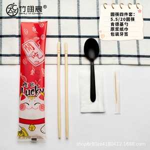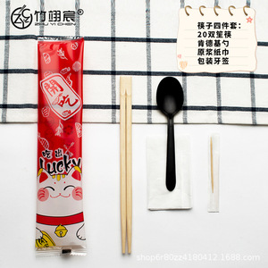 割り箸四点セットの卸・テイクアウトパッケージ食器三点セットのホテル用四合一竹箸セット