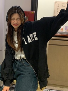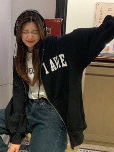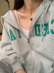 ジッパーの帽子のコートの女性の灰色の冬の新しい幅の秋の大きいサイズのベルベットの厚い松の帽子のカーディガンの女子学生