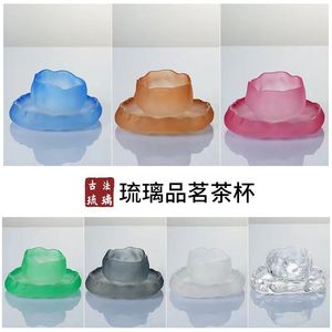 初雪瑠璃ティーカップ上神杯高颜値日本式雪釈杯透明フロスト品茗杯手作りガラスコップ