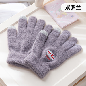 新しい冬用のかわいい防寒保温タッチスクリーン対応タイピング学習刺繍漫画スマイリーニット手袋(サイクリング用)