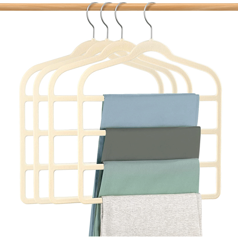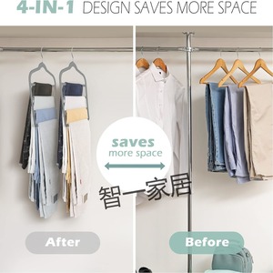 四段植毛ズボンラック家庭用整理多層植毛ズボンラック多機能収納用無痕滑り止めプラスチックハンガー