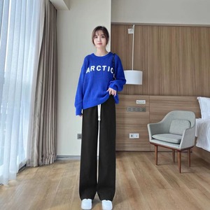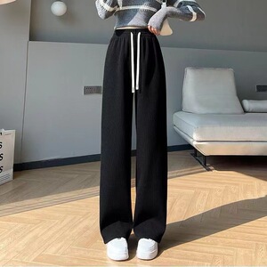 秋冬の新型コーデュロイのワイドレギンスの女性の欧尼の絨毛のひものズボンは地のズボンの高い腰のカジュアルなズボンのストレートなズボンの女性を引きずっています。