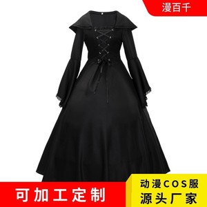 ハロウィンドレス中世宮廷スクエアカラーレースアップチュニックベルスリーブパーティー宮殿スタイル文学レトロ