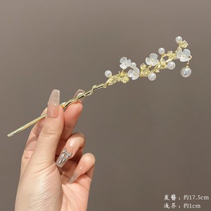 69 # 白い粉の双花真珠のフリンジのかんざし-金色 (袋入り)