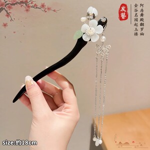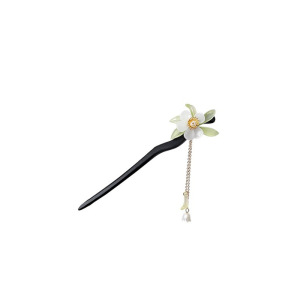 13 # 白い蓮の花真珠花金流蘇髪かんざし (袋入り)