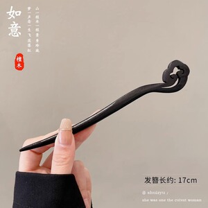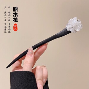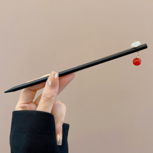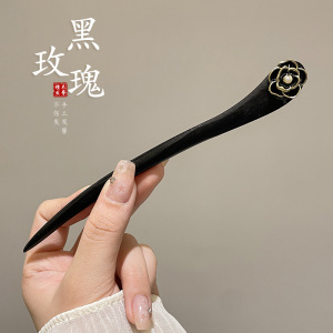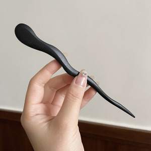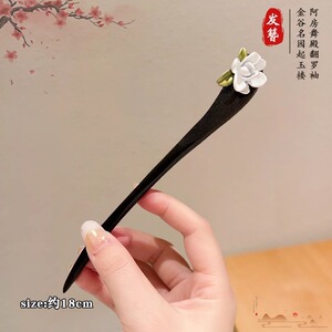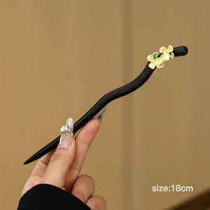 4 # 金色ツバキの木のかんざし-黒 (袋入り)