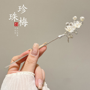 21 # 梅の花の薄い青い花の真珠のフリンジのかんざし (袋入り)