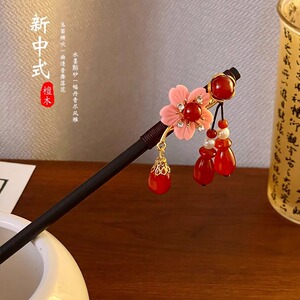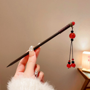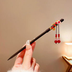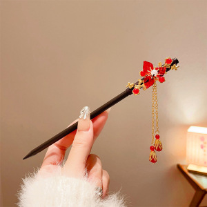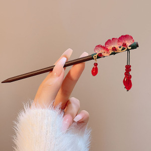 39 # 一枝梅暗紅ヘアピン-銃黒 (袋入り)