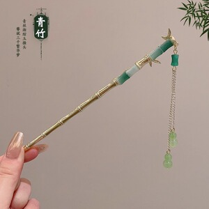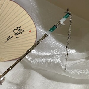 24 # 緑竹葉かんざし-銀色 (袋入り)