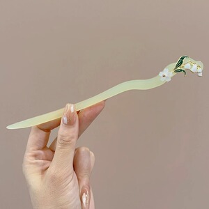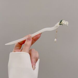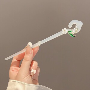 10 # 白玉色8字白玉ペンダントかんざし (袋入り)