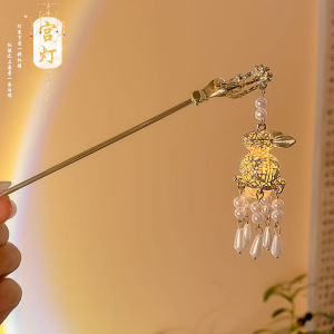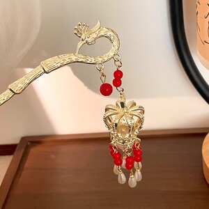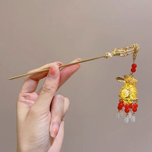 39 # 金色のウサギのかんざし【赤】ランプ付き