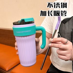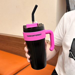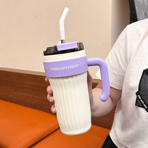 高颜値保温カップストロー付き女子シンプル学生カップinsネット赤斜めショルダーカップ大容量携帯
