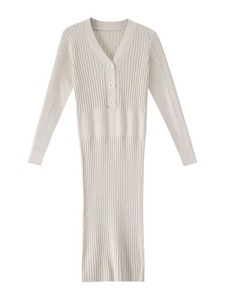 フランスのレトロなワンピースの女性の秋冬の気質のvネックは底のニットのスカートを打って腰を収めてやせている毛のスカートを収めてお尻の長いスカートを包みます。