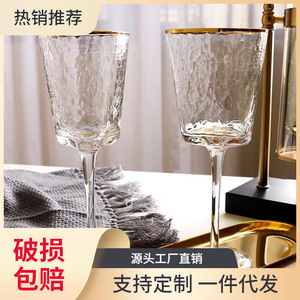 北欧の軽い豪華な金の縁のハンマーの紋様の三角のグラスの高い顔の値の水晶のワイングラスのシャンパンのコップの装飾のコップ