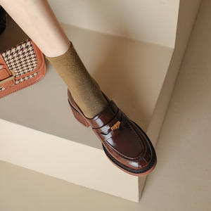 金貨楽福靴2023秋の新型の靴の靴の太いヒールの中でハイヒールの英倫風の靴の女性