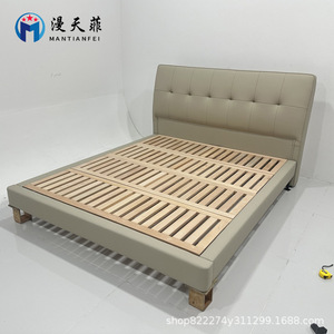 現代のシンプルで軽い豪華なチョコレートベッドのイタリア式の極めて簡単なソフトベッドのケヤキの骨格の実木ベッドの真皮ベッド